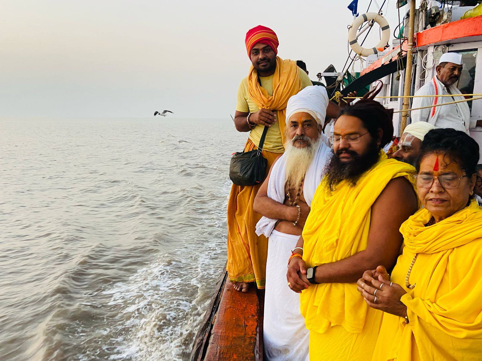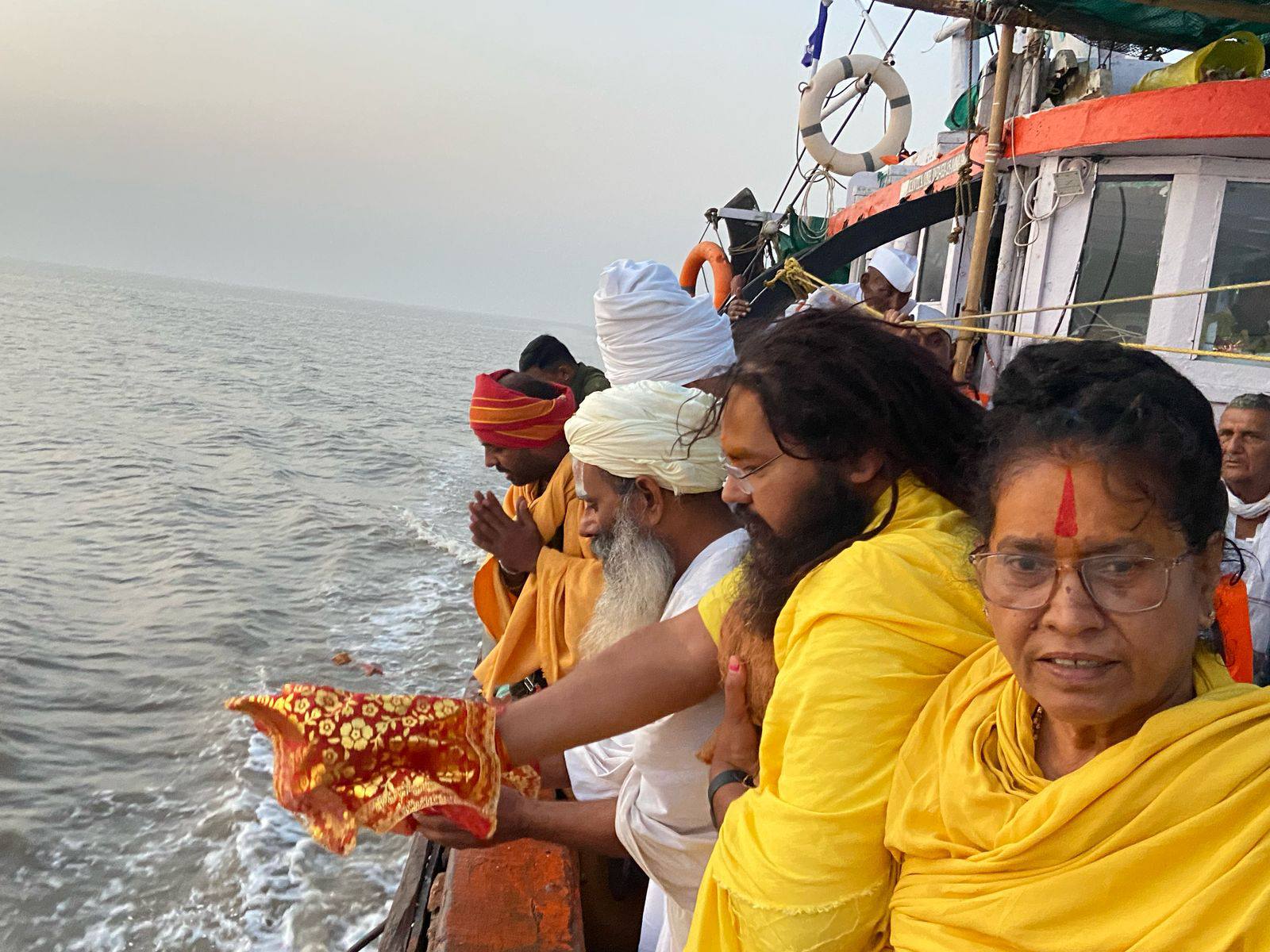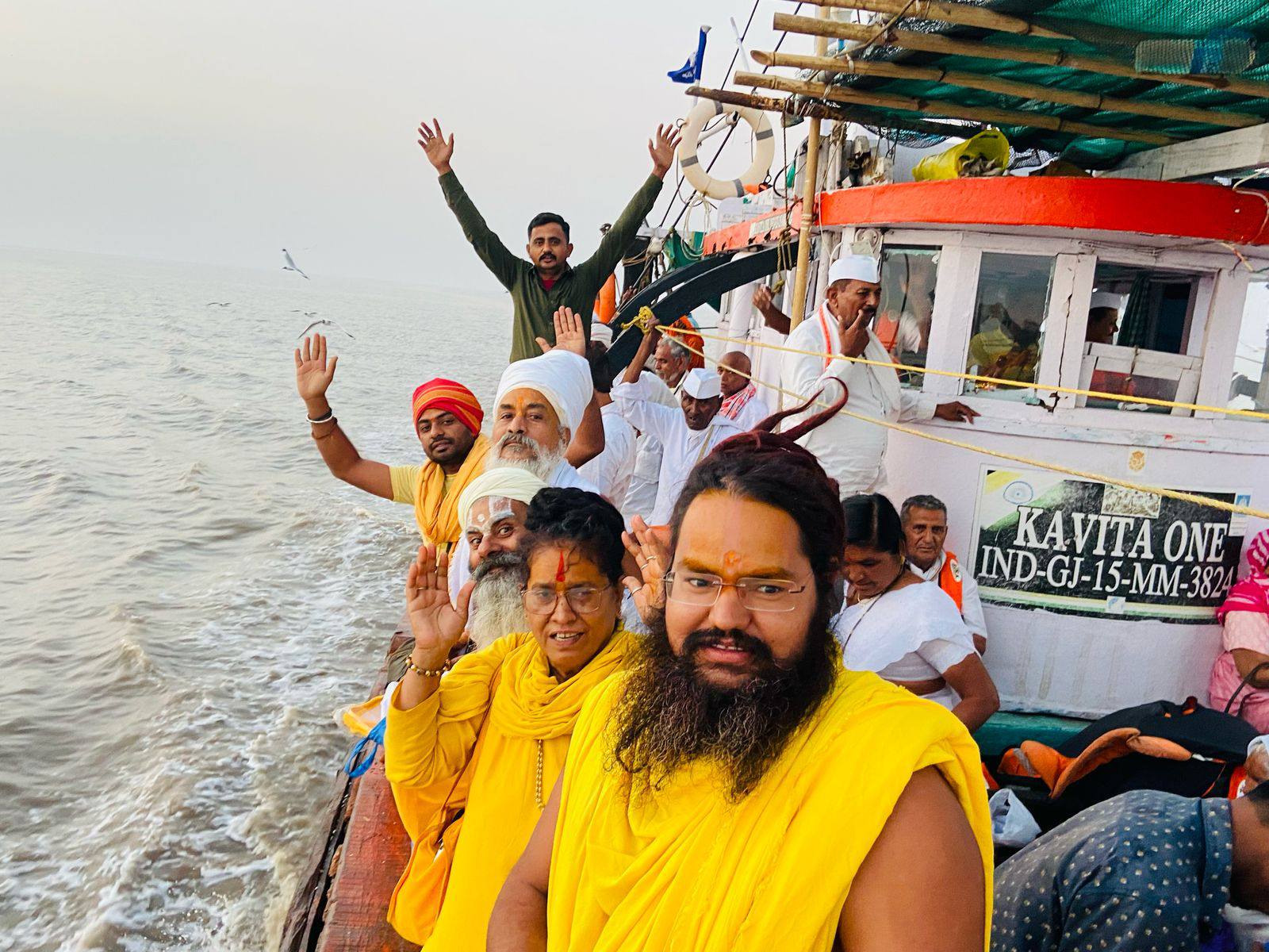 माँ नर्मदा परिक्रमा यात्रा में विमलेश्वर से मीठीतलाई (45 किलोमीटर) तक समुद्र मार्ग पर नाव द्वारा दक्षिण तट से उत्तर तट की परिक्रमा की।