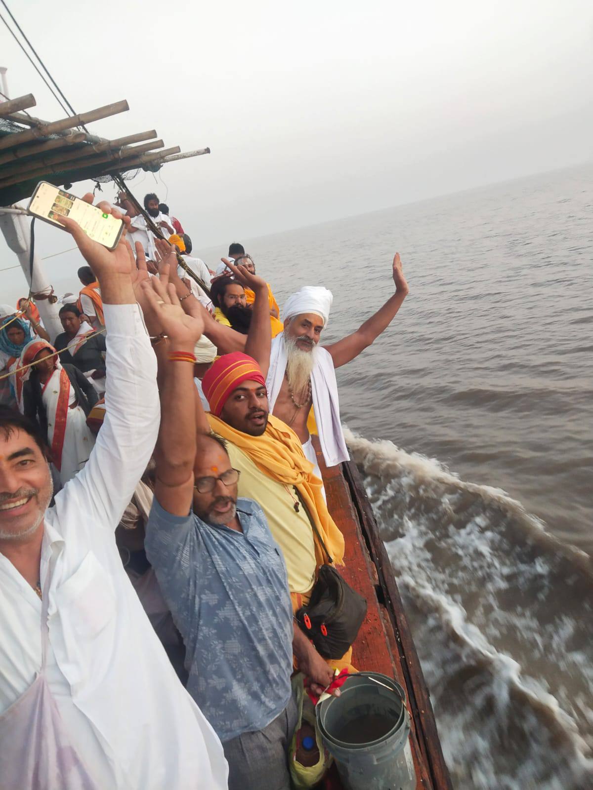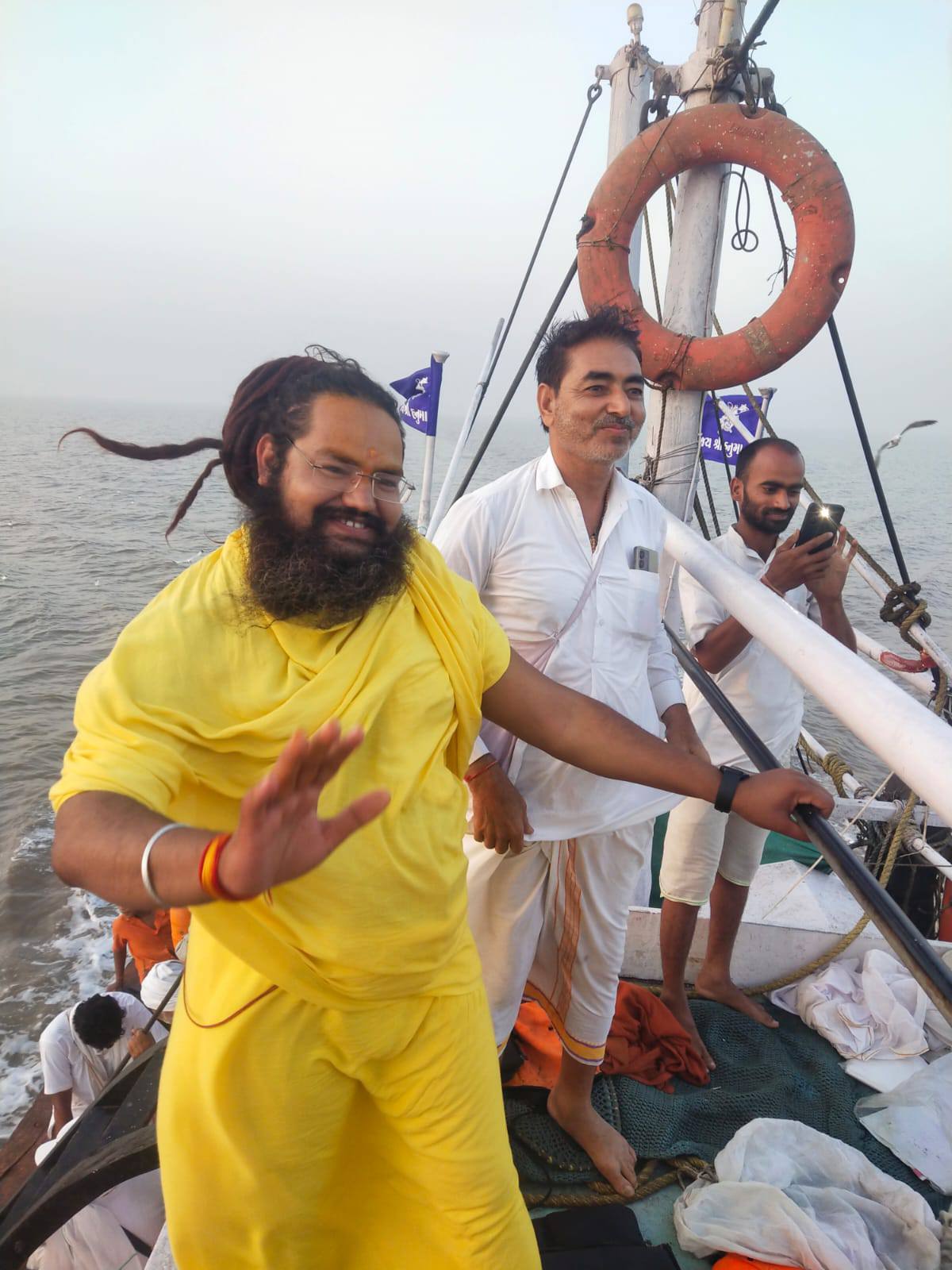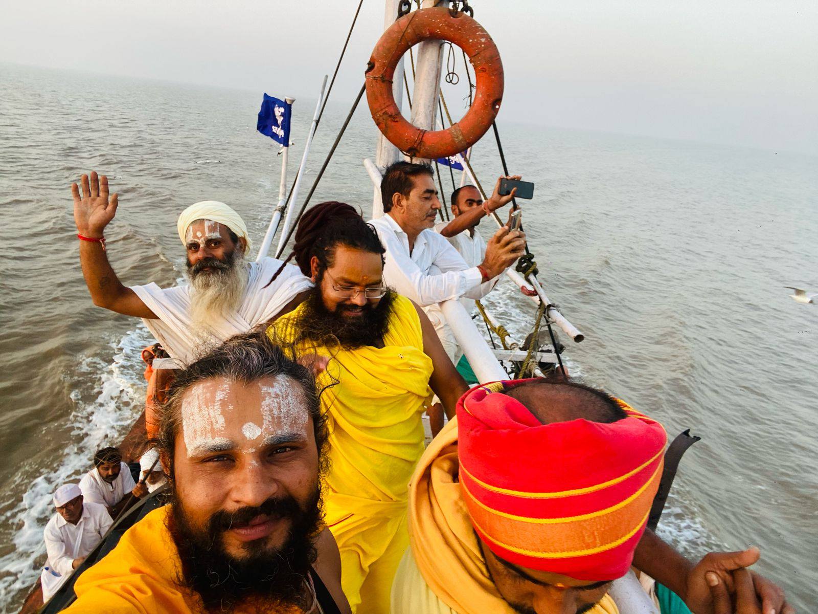 माँ नर्मदा परिक्रमा यात्रा में विमलेश्वर से मीठीतलाई (45 किलोमीटर) तक समुद्र मार्ग पर नाव द्वारा दक्षिण तट से उत्तर तट की परिक्रमा की।