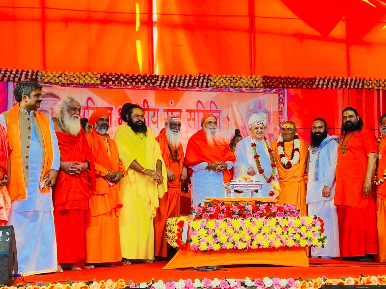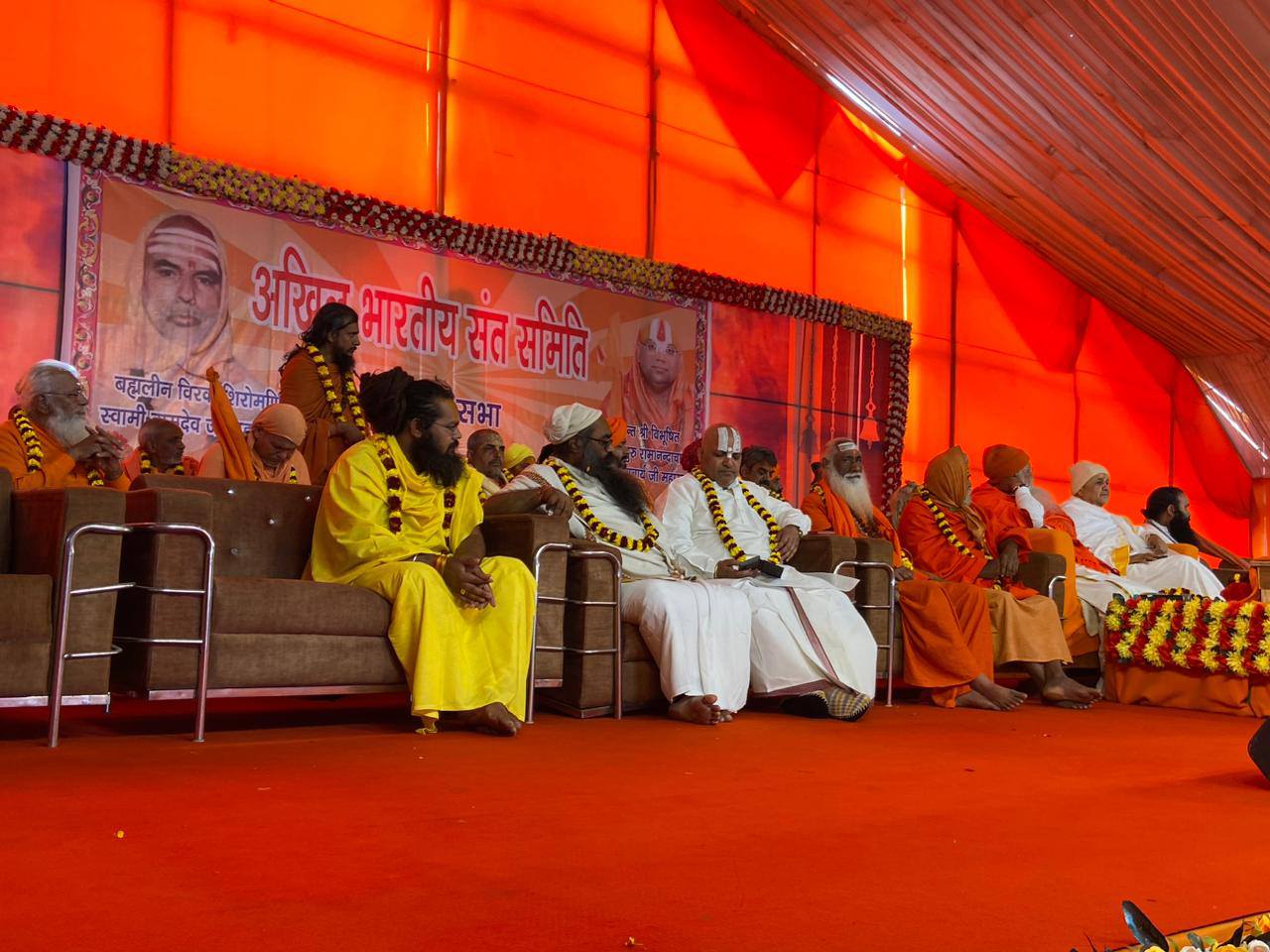 महाकुंभ पर्व 2025 राष्ट्रीय अधिवेशन अखिल भारतीय संत समिति मे पूज्य संतों का सानिध्य