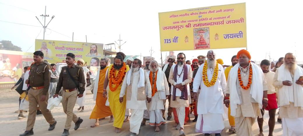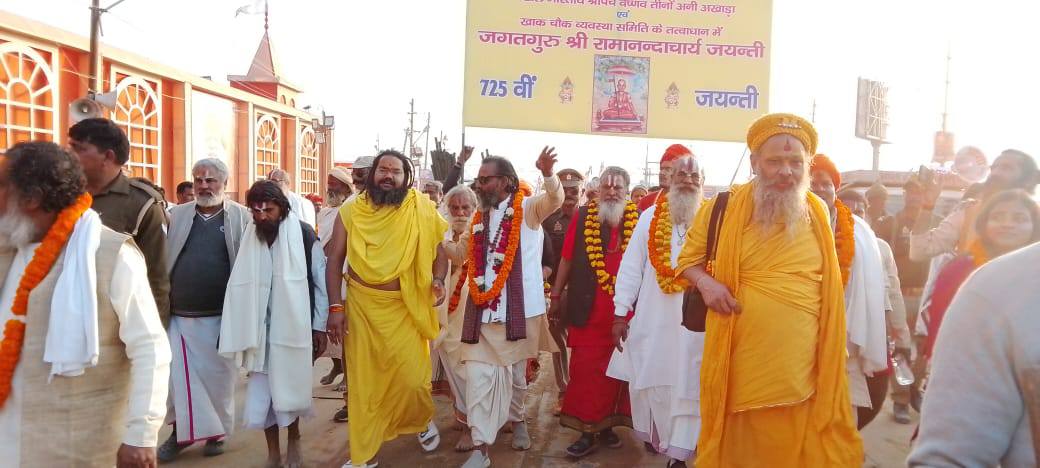 अखिल भारतीय श्रीपंच वैष्णव तीन अनी अखाड़ा एवं खाक चौक प्रबंध समिति के तत्वाधान में जगतगुरु श्री रामानंद आचार्य भगवान के 725 जयंती पर विशाल शोभायात्रा का आयोजन हुआ शोभायात्रा का परम् पूज्य गुरु महाराज जी एवं समस्त संतो के साथ अभिनन्दन किया।