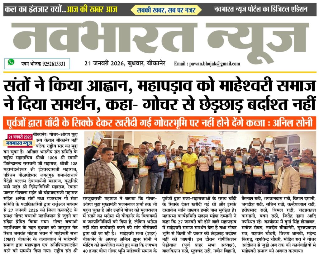बीकानेर का गोचर-ओरण संरक्षण अब बना राष्ट्रीय मुद्दा : जनवरी में होगा बड़ा आंदोलन, देशभर से जुटेंगे संत महात्मा, गोरक्षक