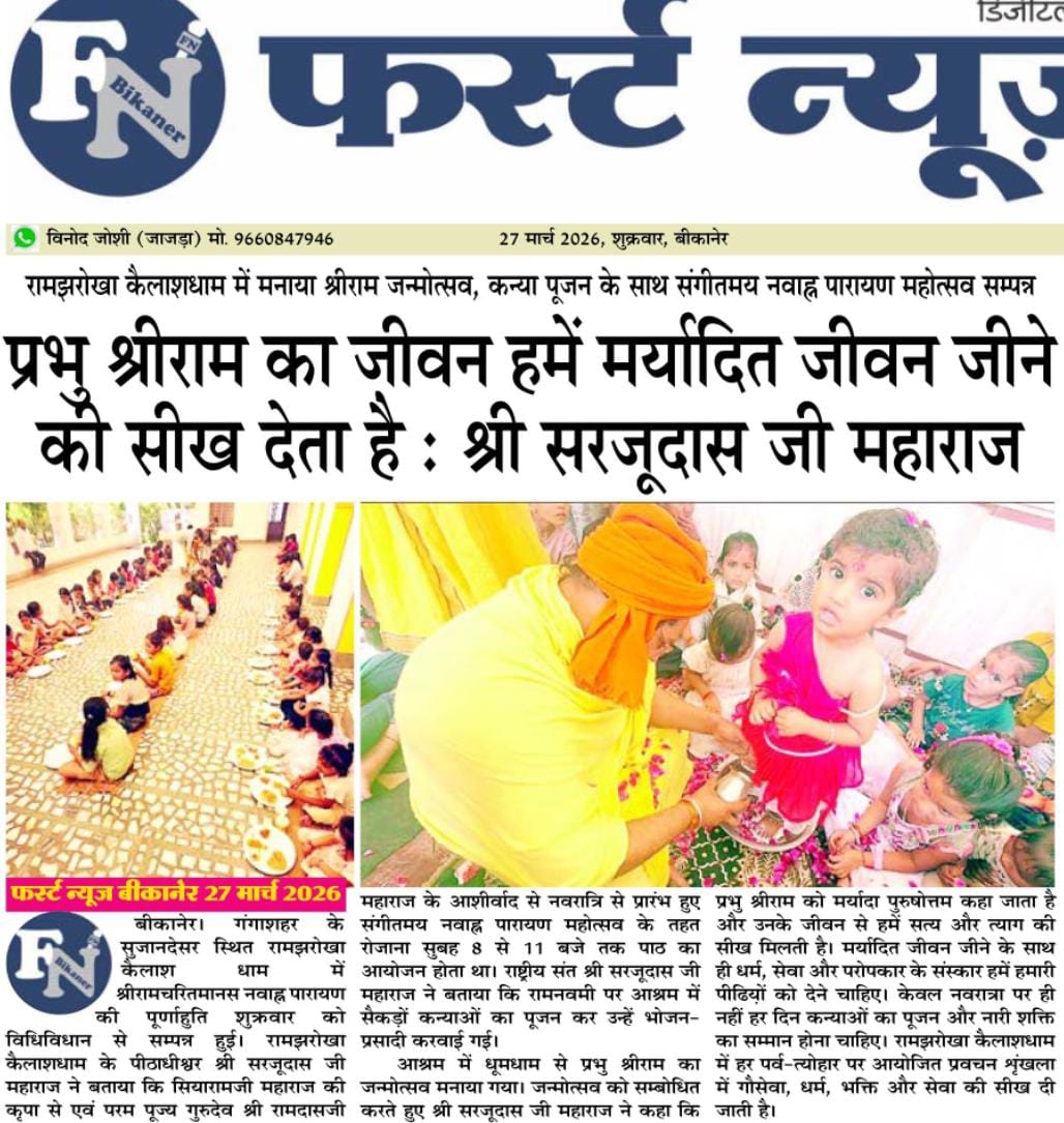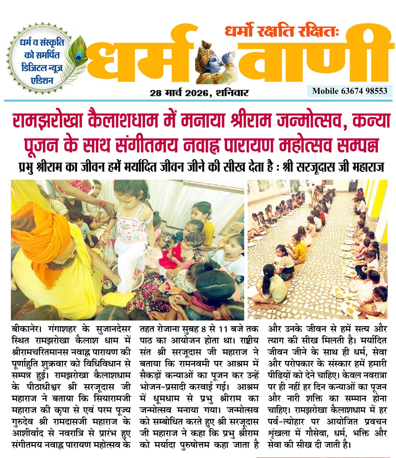श्री राम झरोखा धाम में उत्साह से मनाया राम जन्मोत्सव