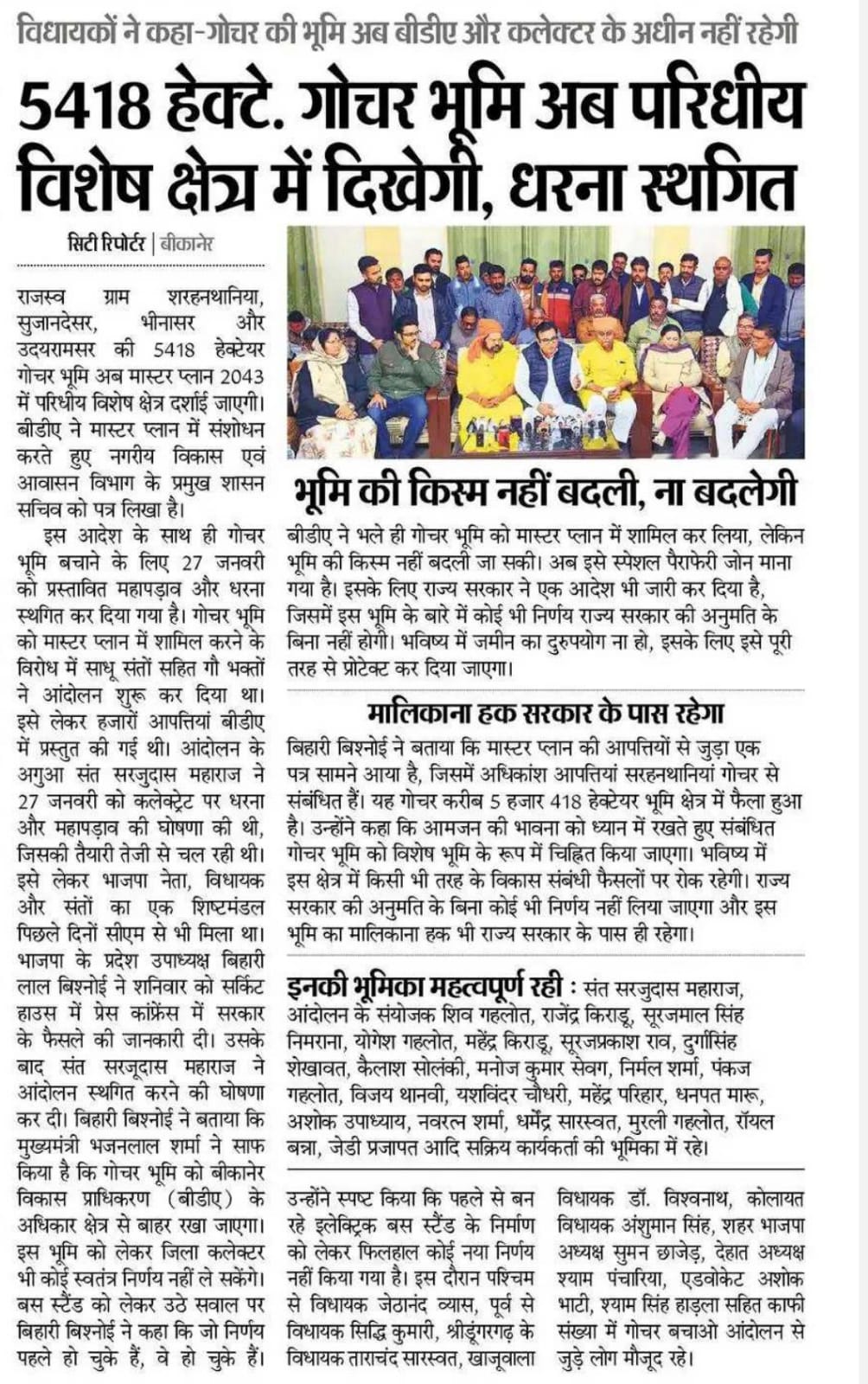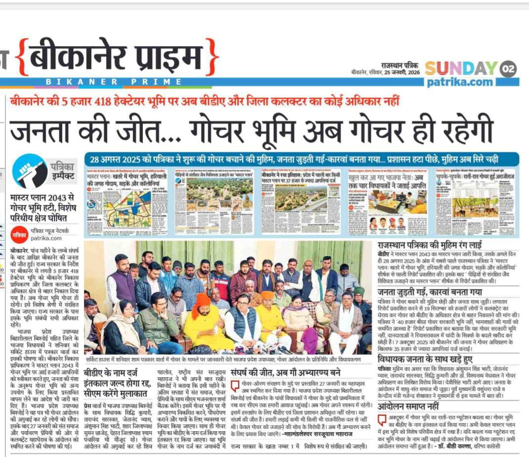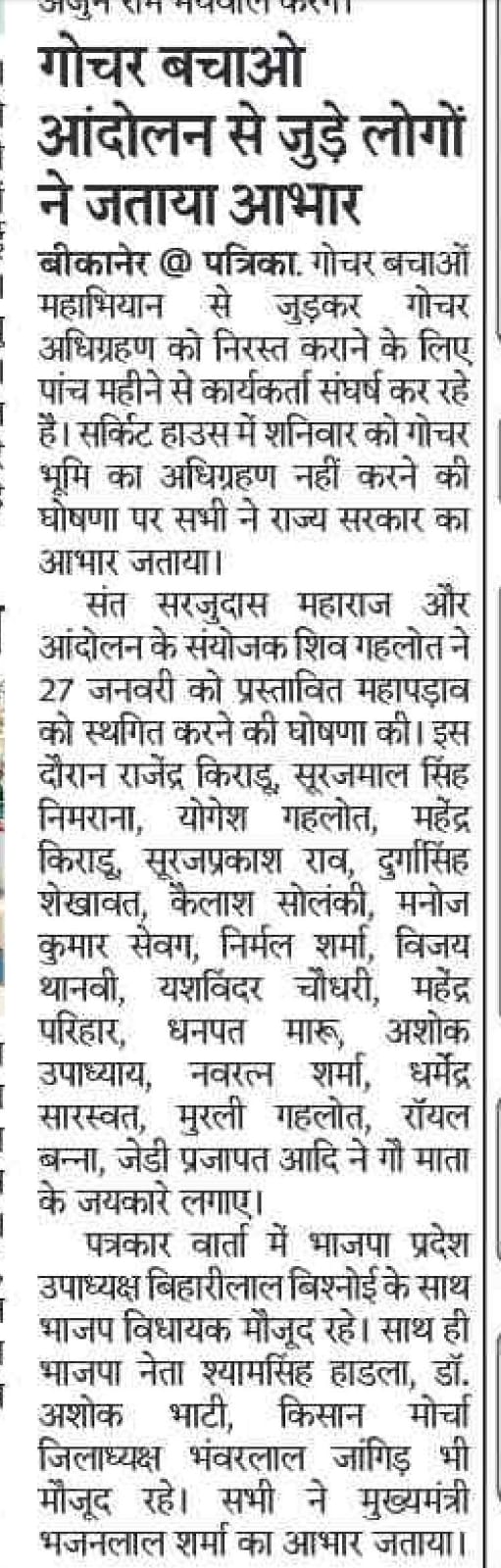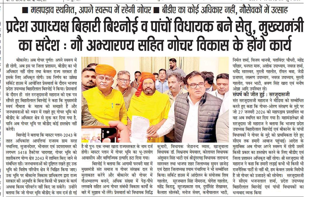 प्रदेश उपाध्यक्ष बिहारी बिश्नोई के पांचों विधायक बने सेतु, मुख्यमंत्री का सन्देश : गौ अभ्यारण सहित गोचर विकास के होंगे कार्य
