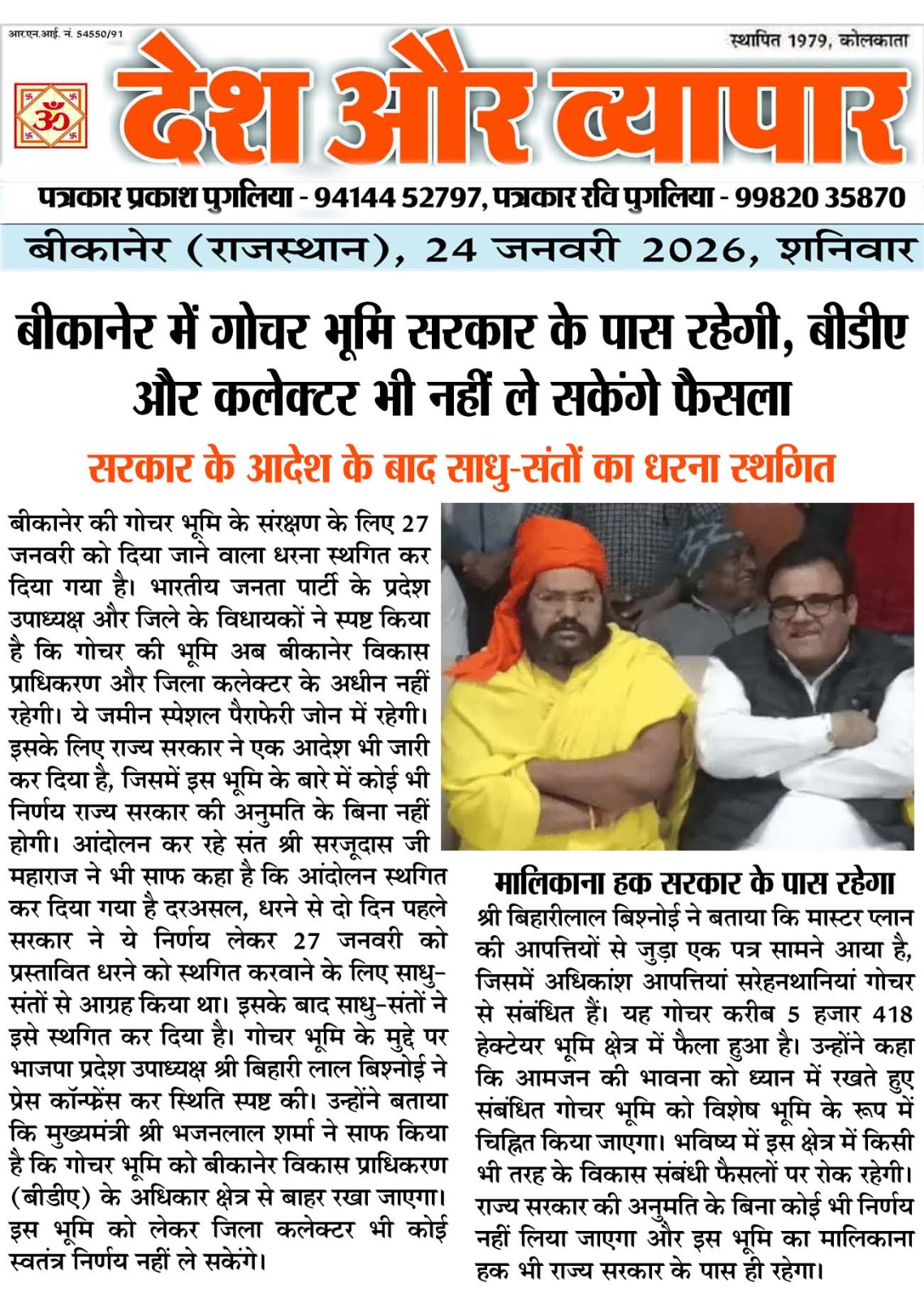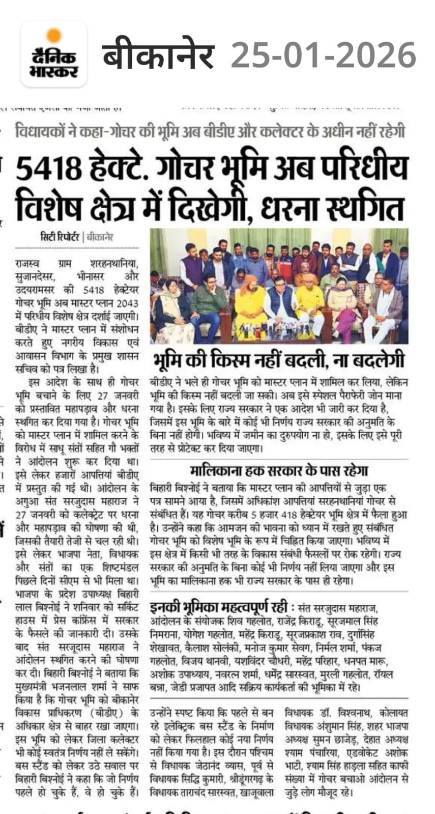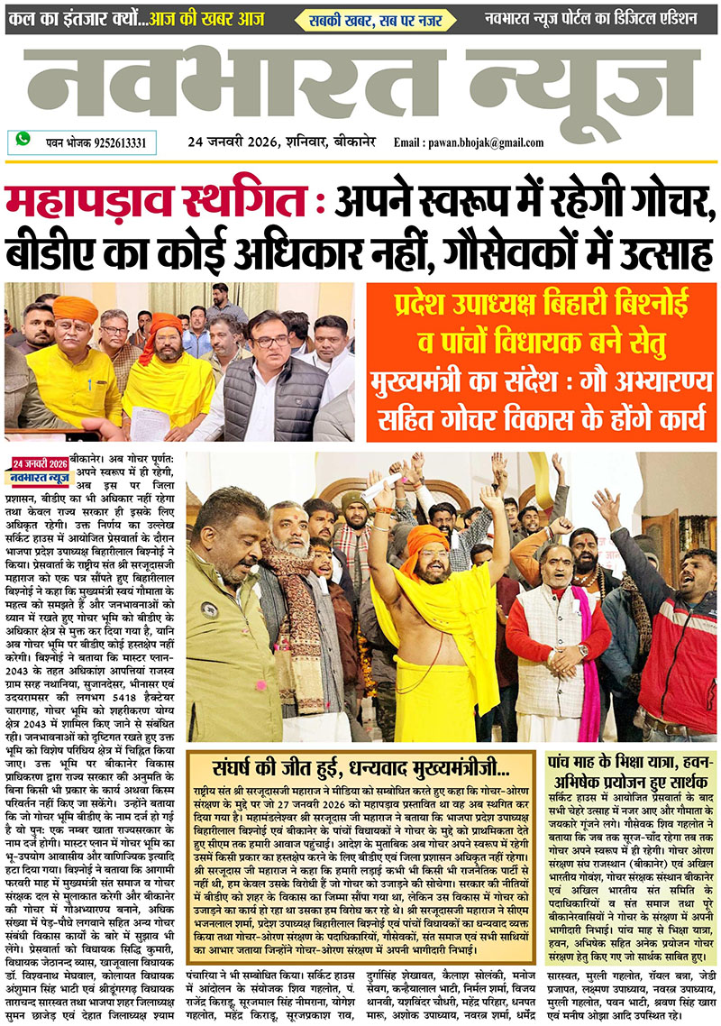 प्रदेश उपाध्यक्ष बिहारी बिश्नोई के पांचों विधायक बने सेतु, मुख्यमंत्री का सन्देश : गौ अभ्यारण सहित गोचर विकास के होंगे कार्य